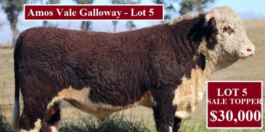Sale topper sold to $30,000 (Lot 5. Amos Vale Galloway P011 sold in partnership to Beggan Hill & Glenellerslie Hereford & Poll Hereford Stud)