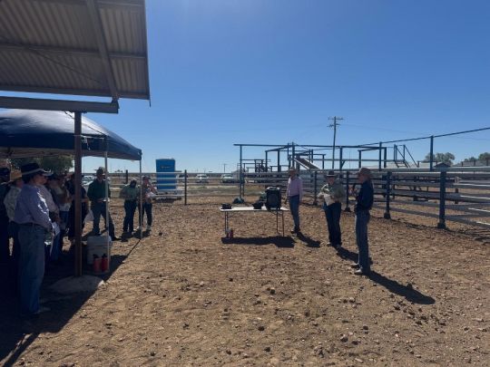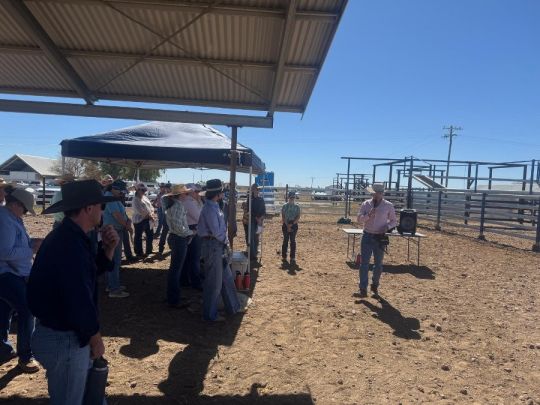 Proceedings began in the cattleyards at Longreach Station, where Dr Michael McGowan and Dr Geoffry Fordyce led interactive sessions on bull screening, selection, and management. AACo’s James Copley shared insights from large-scale breeding programs, while Elsie Vincent and Meghan Anderson from Black Box Co discussed how genetic data can sharpen decision-making. International guest Dr Alison Meyer, from the University of Missouri, presented her findings on maternal nutrition and its effects on calf outcomes, complementing the project’s focus on pre-calving management and reproductive efficiency.