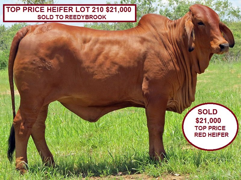 Brian Harriman, Reedy Brook, Mt Garnet took home top price red heifer $21,000 Lot 210 Lanes Creek Krystal.