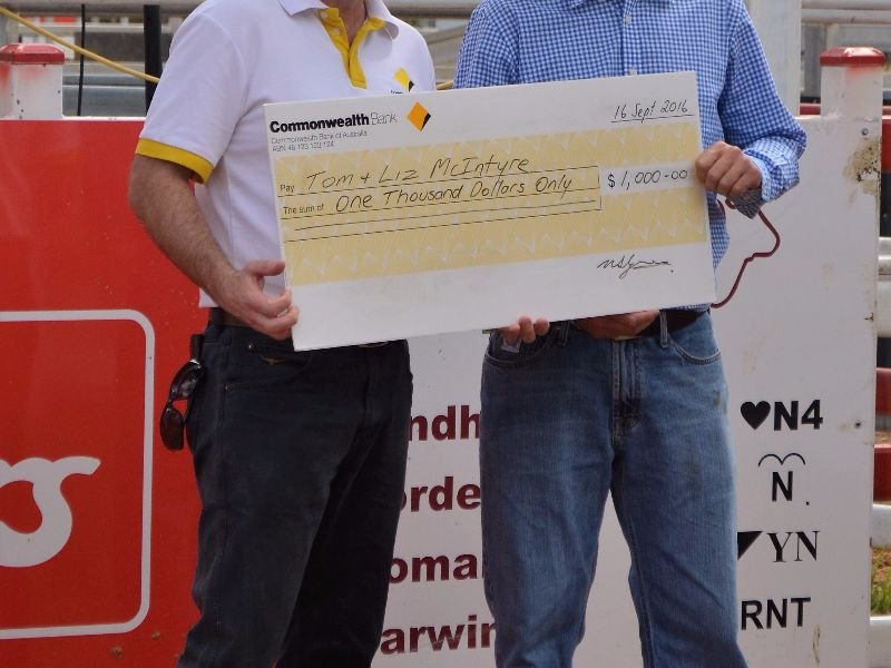 McIntyre Cattle Company were the volume buyers with their purchases of eleven bulls at the sale and receive the bonus cheque from the CBA bank.