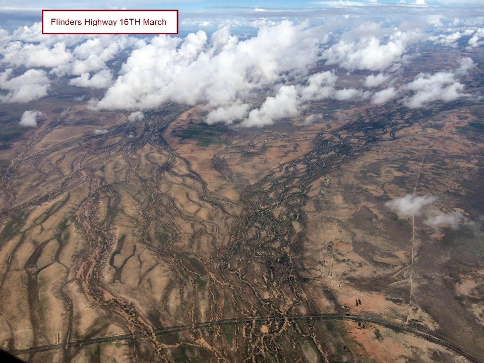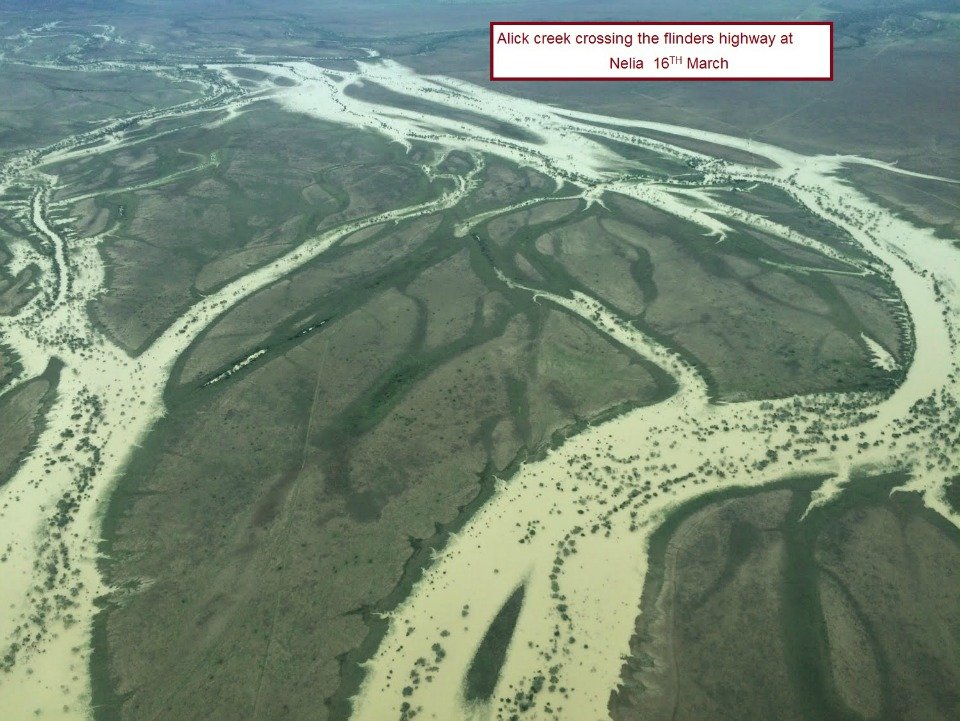 I gave Roger Hill a quick call to see what he was up to and were he was at, he sent some great photos of Alick creek crossing the flinders highway at Nelia from the air today.