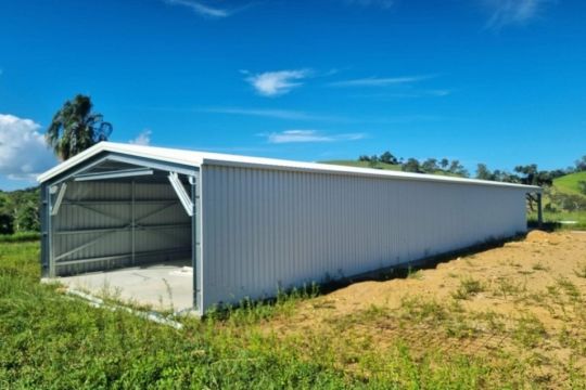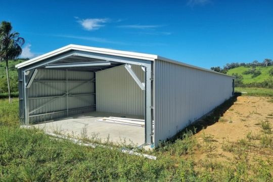 The Property features are large 35 meter x 8 meter fully enclosed shed, full concrete floor in the shed with plumbing in place to make it livable with council regulations. The shed is less than 12 months old. Power is also on the property but not connected.