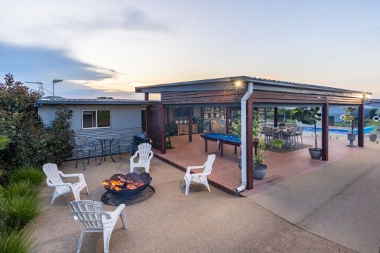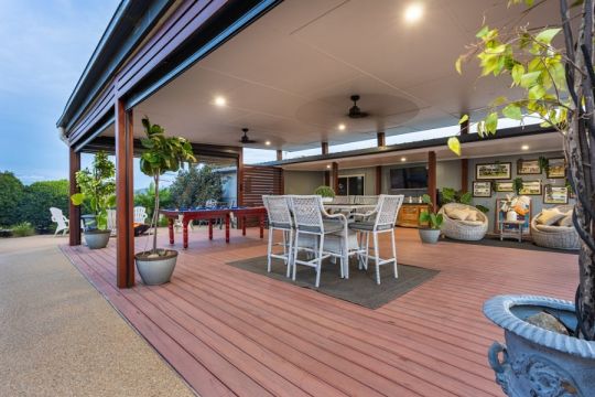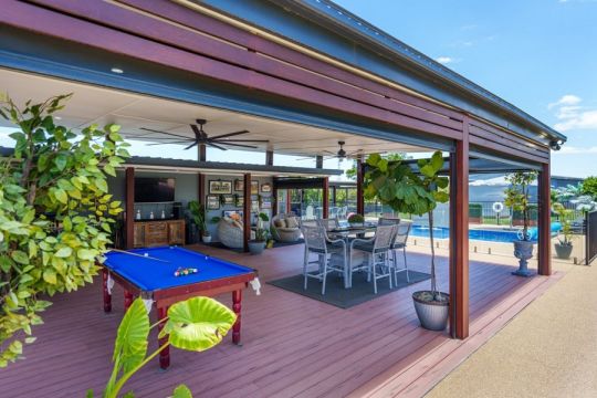 This area functions as a dedicated entertaining hub, complete with a 9m in-ground swimming pool, tropical landscaping, designated fire pit area and a large covered entertaining area.