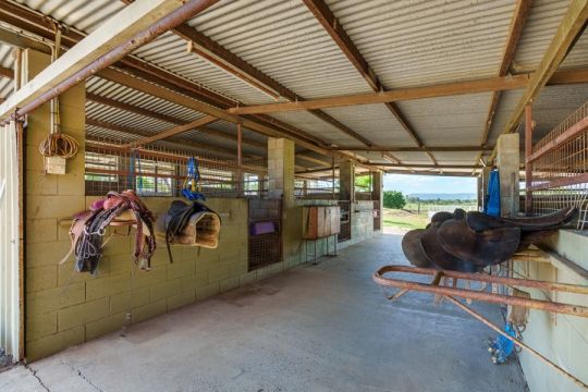 Well-established infrastructure further supports the functionality and versatility of the property. Improvements include multiple sheds, hay storage, a four-bay machinery shed, workshop facilities, and horse facilities comprising twelve stables, training yards, and handling areas.