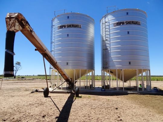 Structural Improvements: Two fixed 73 ton Conical base silos, older dwelling with generator power along side.