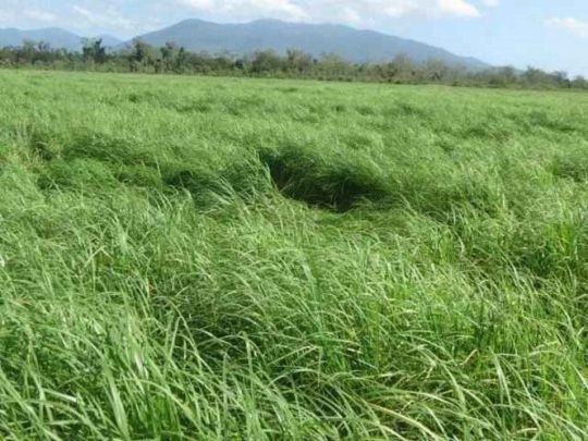 Rhodes Grass- 151 ha planted; 5t / ha each harvest; Average of 5 cuts per year