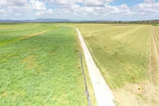 200ha flood irrigated laser levelled bays currently planted to Rhodes grass.