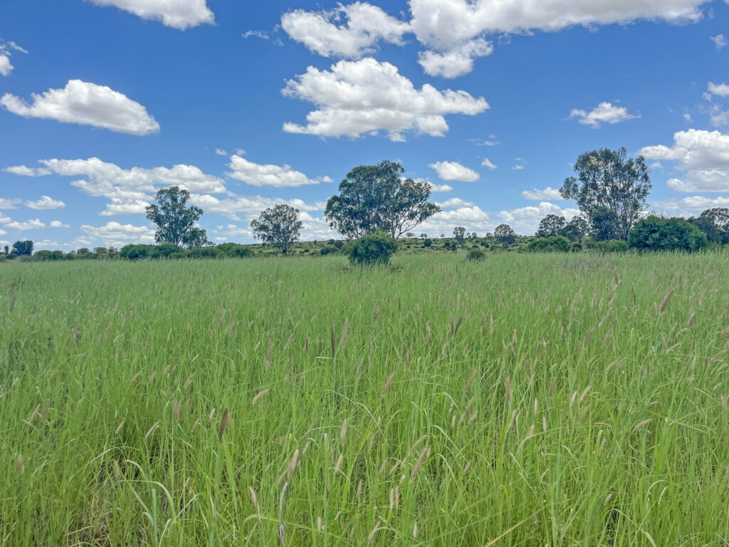 Country: A large proportion of the property consist of Brigalow scrub soils with the remainder being black soil creek flats and soft open Ironbark ridges. Variety of grasses including Buffel and Green Panic, mixed with soft native grasses. The property has an excellent PMAV.