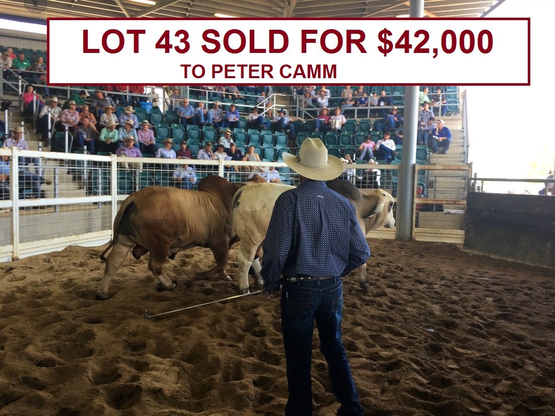 Let’s start on the Red bulls sale topper was Lanes Creek Brahmans’ Lanes Creek Duragal 1665 who sold for $44,000 to Nick Dudarko, Kangarin Brahmans, Biloela